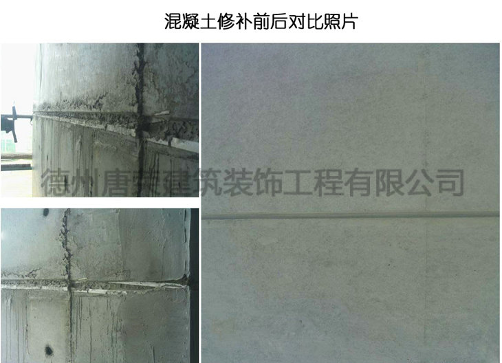 混凝土的缺陷形式很多,比如蜂窩、露筋、麻面等,這些都是小的缺陷,修補及修飾對我公司來說是不成問題,修飾部分的混凝土表面與大面沒有大的色差。主要的缺陷是漲模。這種缺陷的修飾需要大量的人工及材料,還需要技術水平高的工人來操作。我公司專業修補混凝土的蜂窩、麻面、裂縫、露筋、露震、錯臺、局部破損等混凝土缺陷。